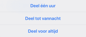 Zo kun je ook voor 1 uur, tot vannacht of voor altijd je locatie delen. Uiteraard kun je het ook altijd weer uitzetten.