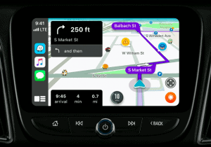 Maar als je je muziek wilt afspelen, wilt bellen onderweg of Apple Maps wilt gebruiken, zul je toch een manier moeten vinden om zo’n app veilig te kunnen bedienen onderweg.